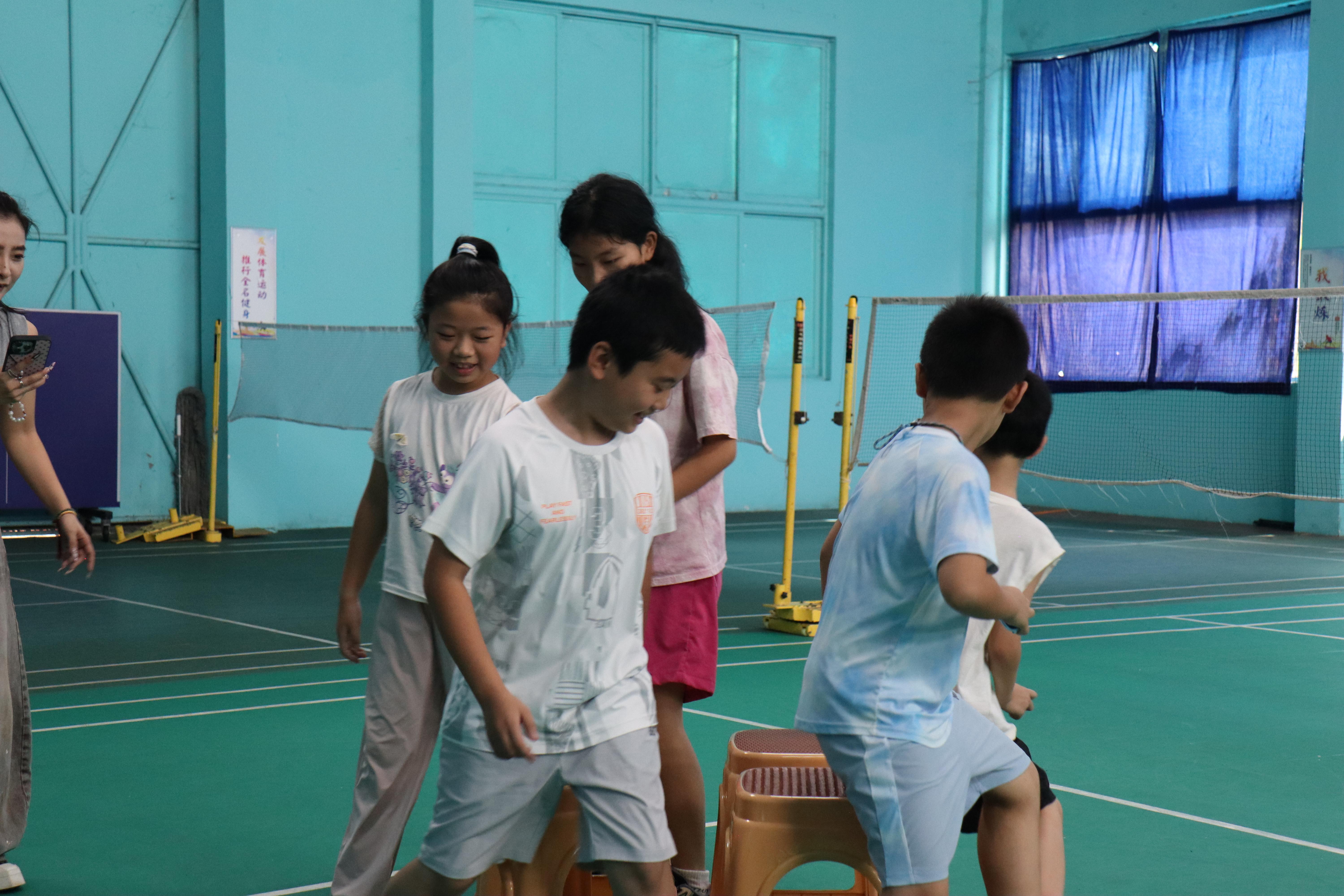 首場環(huán)節(jié)“搶凳子”在歡快的節(jié)奏中拉開序幕,5把椅子圍成圓圈,音樂響起時,孩子們跟隨主持人的節(jié)奏,小步快跑,眼睛緊盯著椅子,當音符戛然而止,敏捷的小身影閃電般落座;